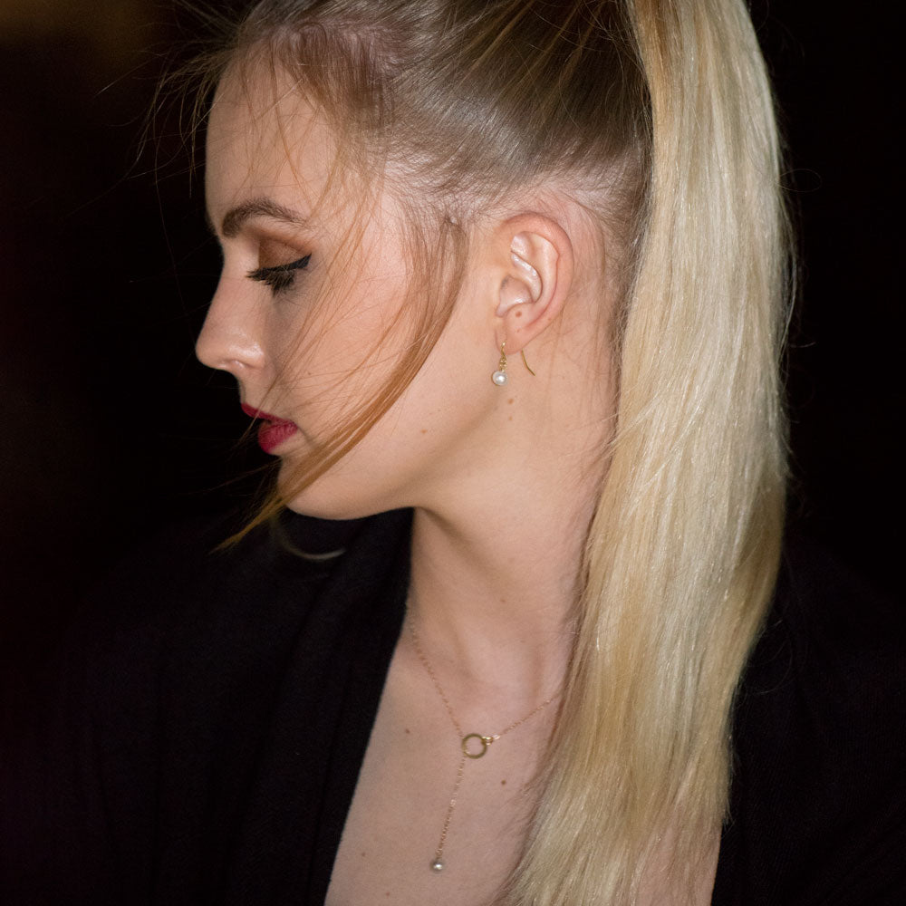 Simple and sweet. 14kt gold french wire earrings with 6-6.5mm cultured freshwater pearls. Full hanging length is 19mm. Earrings come packaged in a pretty bow gift box with magnetic closure. 14kt Gold