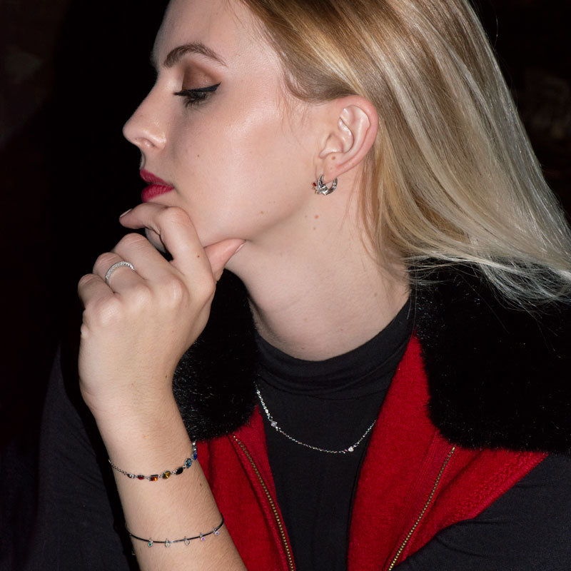Rhodium Plated Crystal Rainbow Bolo Bracelet