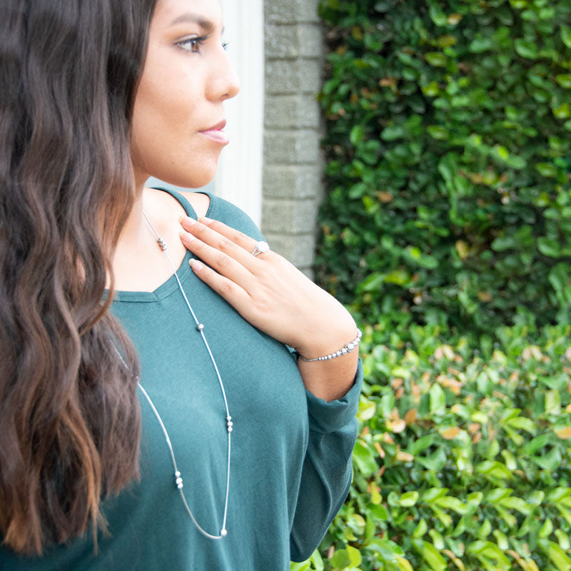 Rhodium Plated Graduated Bead Bolo Bracelet