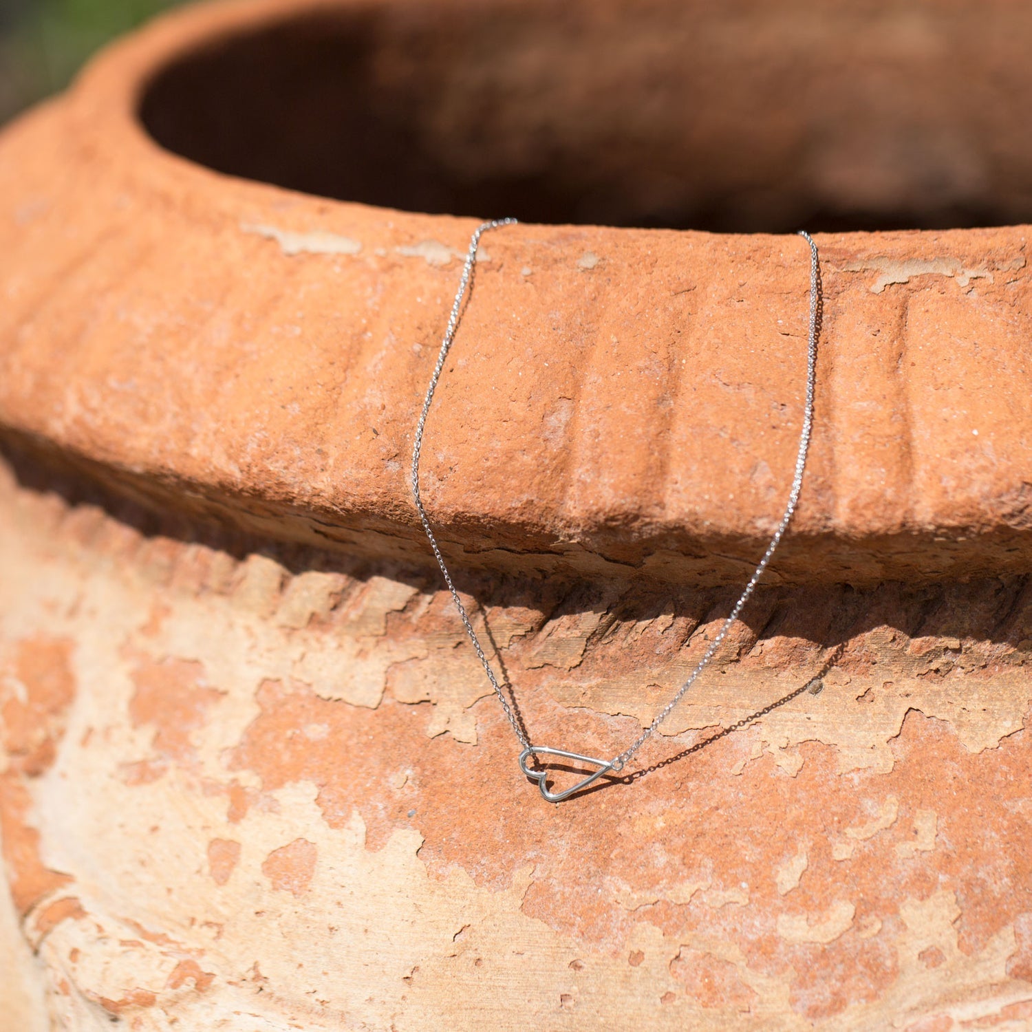 16" + 2" Rhodium Plated Sideways Heart Necklace