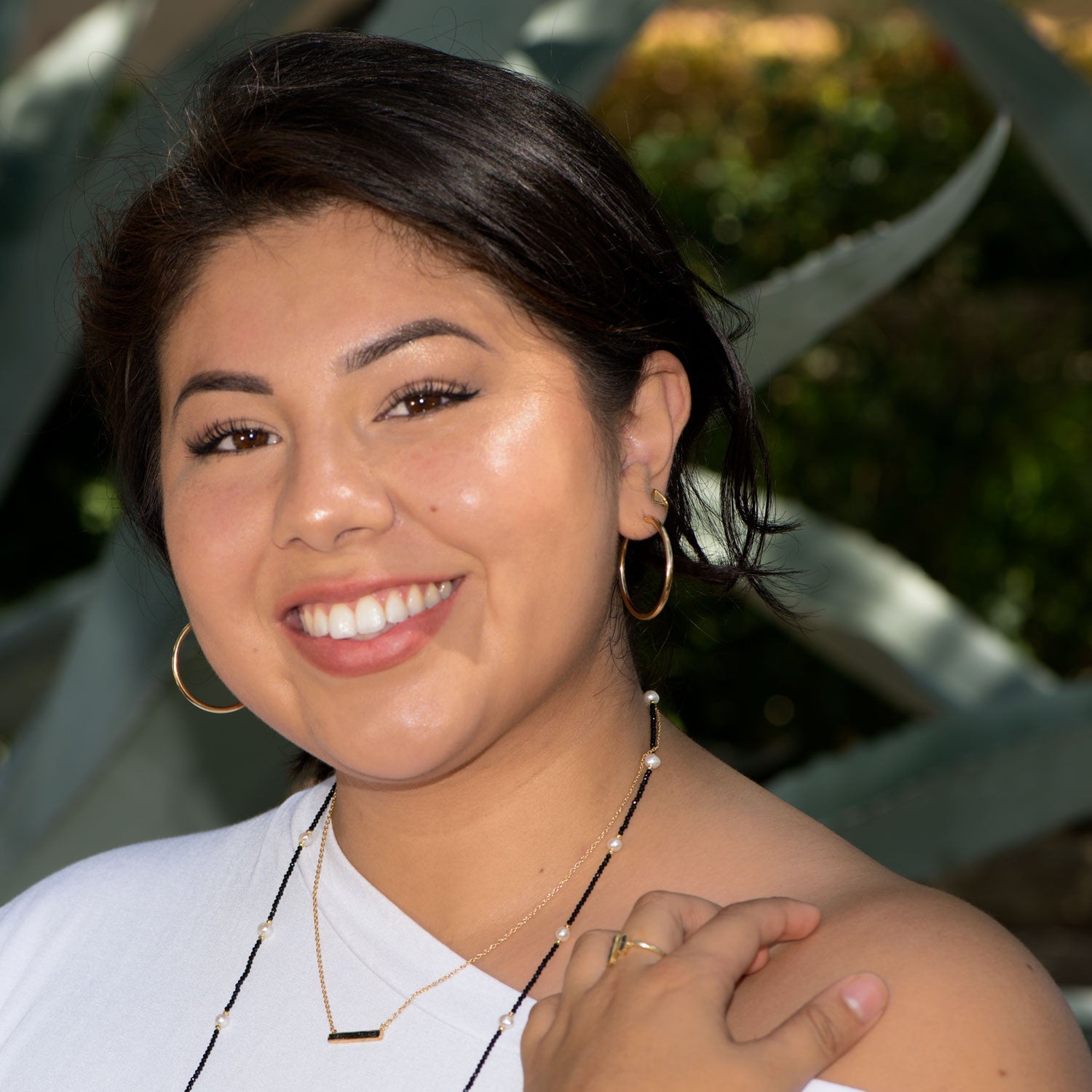 19" + 2" extension 14 karat gold plated sterling silver bar necklace with natural diamond chips set in black resin. The bar is approximately 3mm x 23mm. The diamond chips are approximately .50 ctw. The necklace has a lobster clasp closure. .925 Sterling Silver