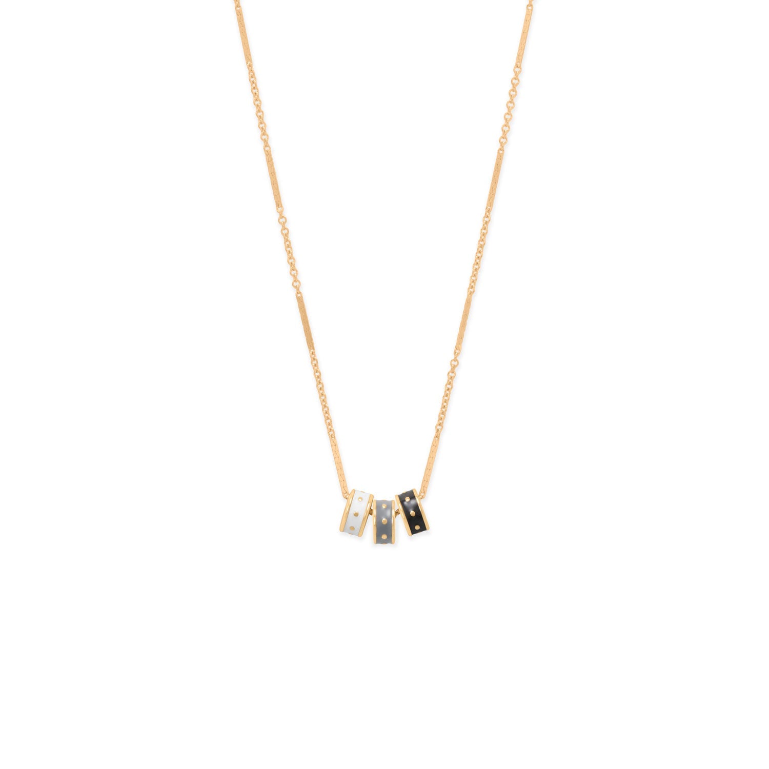 14 Karat Gold Plated Black Enamel Inlay Dotted Wheel Bead Charm