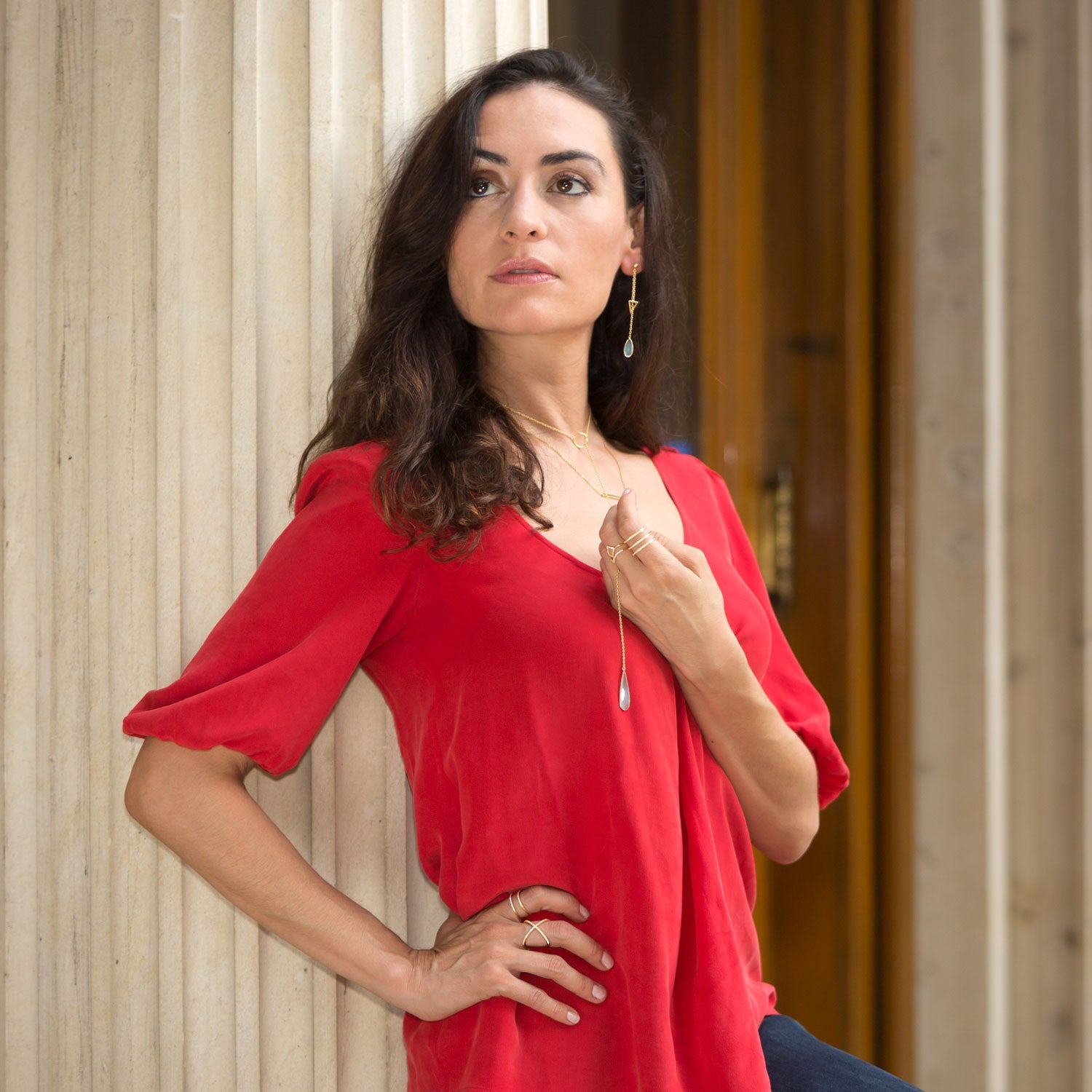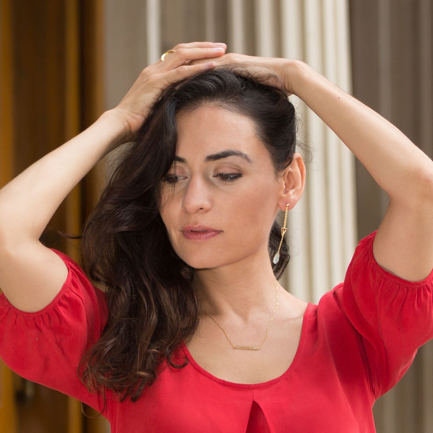 14 Karat Gold Plated Lariat Style Earrings with Chalcedony Drop