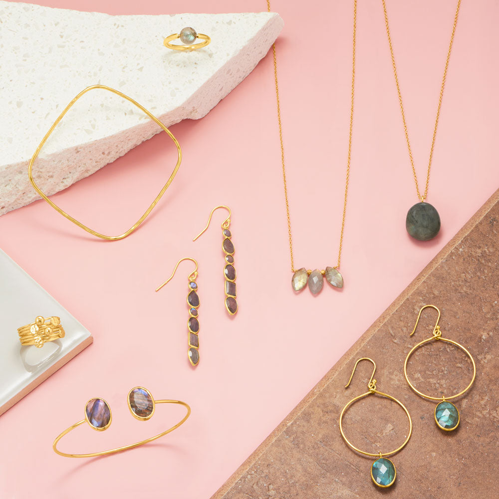 14 Karat Gold Plated Multi Shape Labradorite Earrings