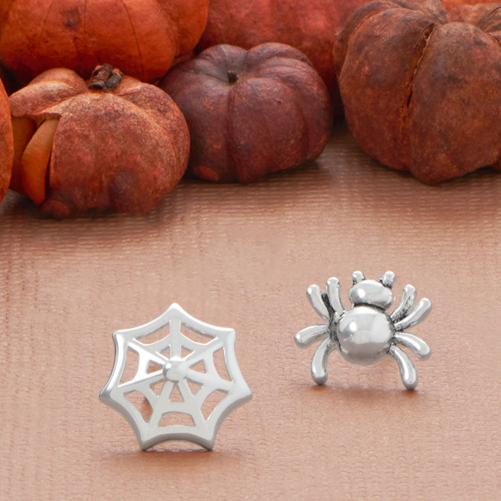 Oxidized Spider and Web Stud Earrings