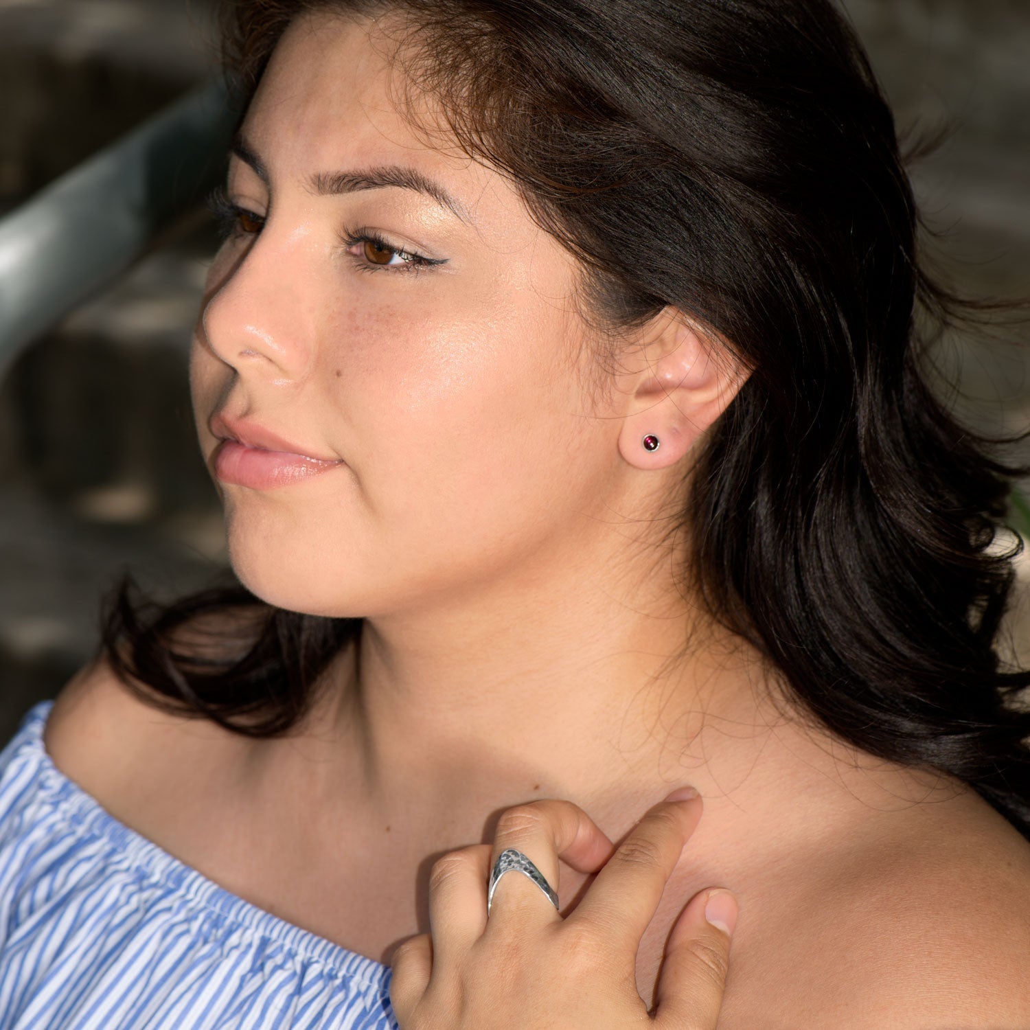Hammered sterling silver "V" design ring. The band width graduates from 3mm to 7mm. .925 Sterling Silver