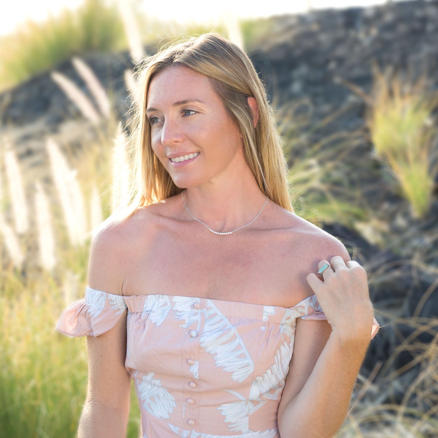 Rhodium plated sterling silver ring with 5mm x 14mm green chalcedony bar. The band is 1.5mm. .925 Sterling Silver