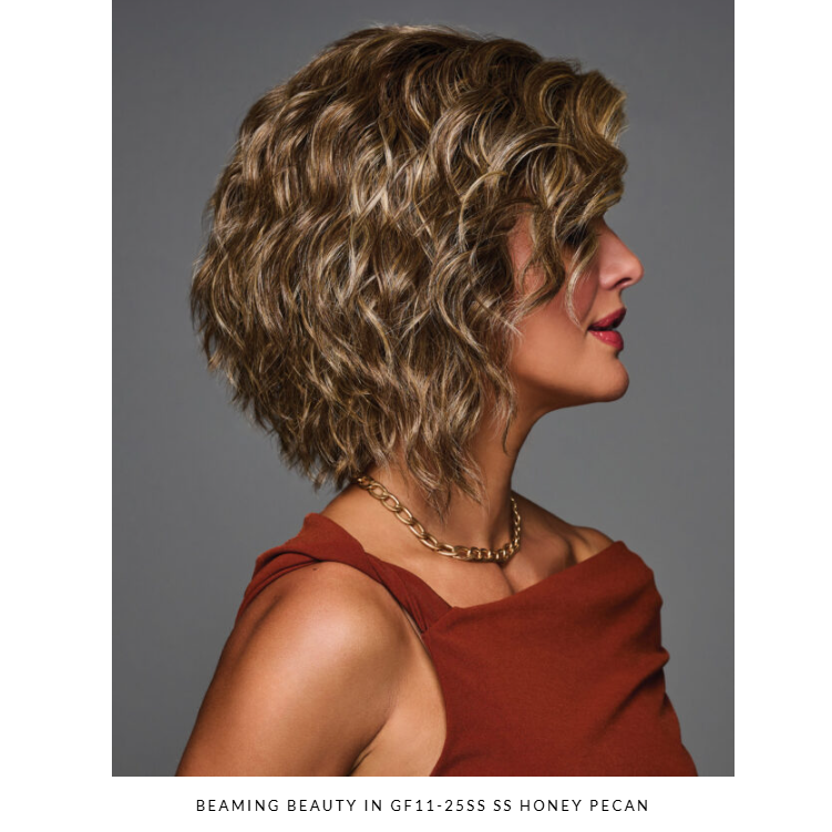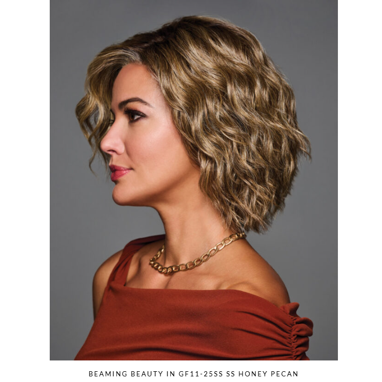 Beach waves are so flattering and so popular that we designed this short, waved bob with a hint of an A-line, taking today’s trending texture to the next level. From the natural-looking monofilament part to the tousled width at the sides, BEAMING BEAUTY has a casual air, but definite attitude.