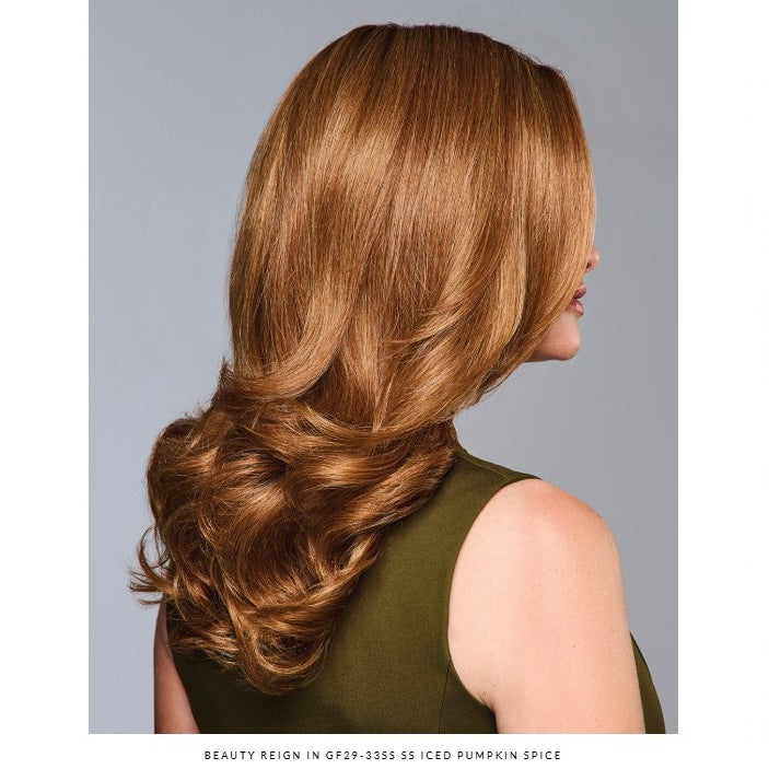 Long layers and a smooth, center-part create the look of a flawless salon blowout –without the appointment. Shoulder-length, round-brushed soft waves have just the right amount of volume. It’s polished, glamorous, and designed to make you feel like royalty.