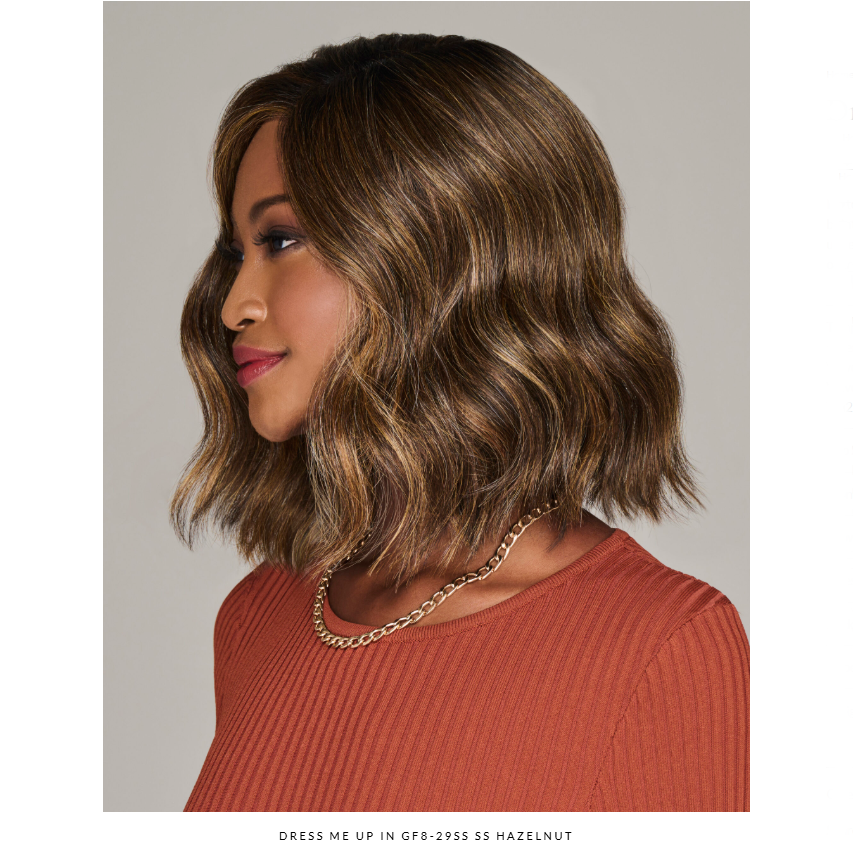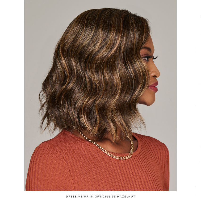 It’s today’s popular, soft tumbled wave texture professionally cut into a blunt, long bob. This unstructured, natural wave is in high demand, understandably so. With loose movement throughout, it’s stylish but not over-styled and undeniably flattering whether dressed up or down. Meet the new wig wardrobe staple.